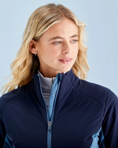 Con una clásica combinación de colores para climas fríos, la chaqueta híbrida aislante Casey para mujer en azul marino/azul fusión ofrece un rendimiento elegante cuando bajan las temperaturas. El aislamiento Clo® Vivo Extreme está distribuido en zonas específicas en la parte delantera, trasera y axilas para una calidez localizada, mientras que los paneles de forro polar elástico y transpirable mejoran la flexibilidad y la comodidad. Resistente al agua y ligera, esta prenda híbrida está diseñada para el golf, pero luce igual de bien fuera del campo, con el elegante logotipo de PING para un acabado impecable.