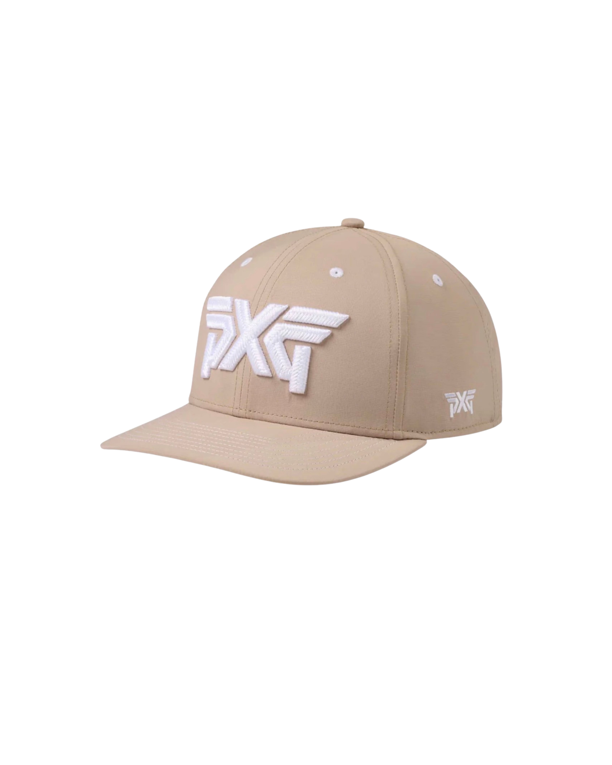 La gorra 6 Panel Structured Low Crown Snapback es el accesorio perfecto para combinar con todo. Disponible en Warm Sand, presenta un gran logo PXG blanco bordado en 3D en el frente, con logotipos más pequeños en los laterales y la parte trasera. El material de poliéster/spandex ofrece la elasticidad justa para una comodidad durante todo el día. Se completa con un cierre ajustable tipo snapback.